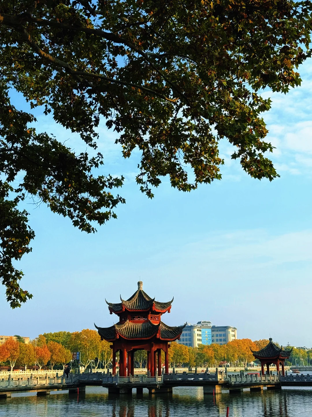 依偎着千年古城墙的襄阳公园,初冬时节透着独有的古朴韵味。不同于其他公园的浓墨重彩,这里没有大面积的彩林,却有错落分布的古树与园内的亭台楼阁相映成趣,一砖一瓦、一草一木都自带古风滤镜。
