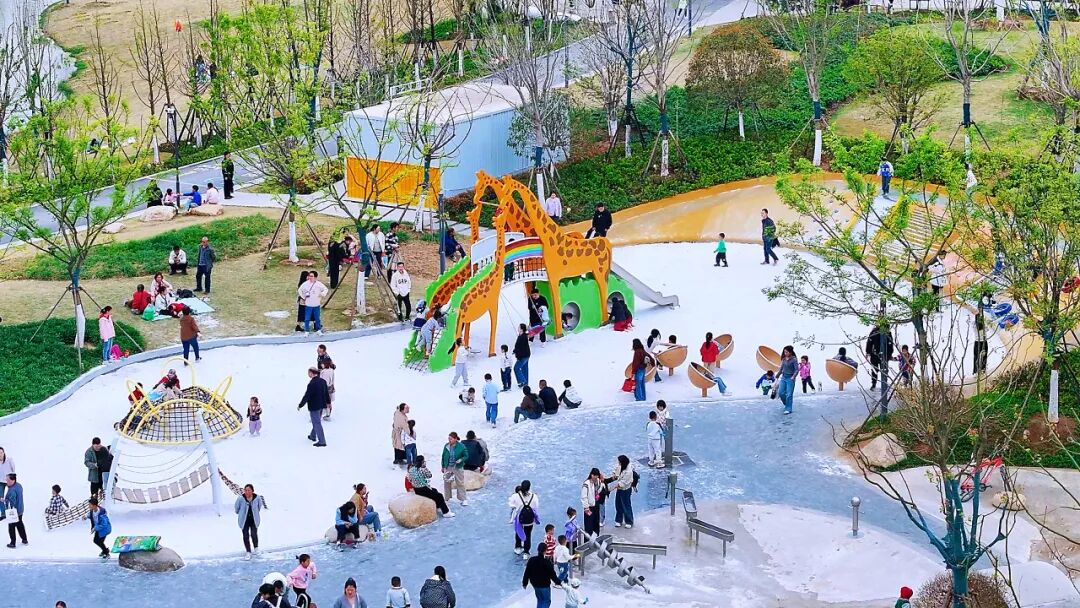 园内六大主题功能区各具特色,户外网球场、篮球场、儿童运动场等设施一应俱全 ——孩童在游乐区尽情嬉戏,青年在运动场上挥洒汗水,长辈沿绿道悠闲漫步,每个人都能在这里找到属于自己的乐趣。