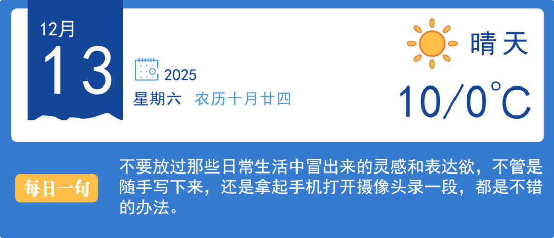 ■ 12月12日,“2025年度十大网络流行语”发布,依次为:DeepSeek、敬自己一杯、助我破鼎、××基础××不基础、千百次练习只为这一刻、情绪价值、如何呢又能怎、村咖、来财、浪浪山小妖怪。