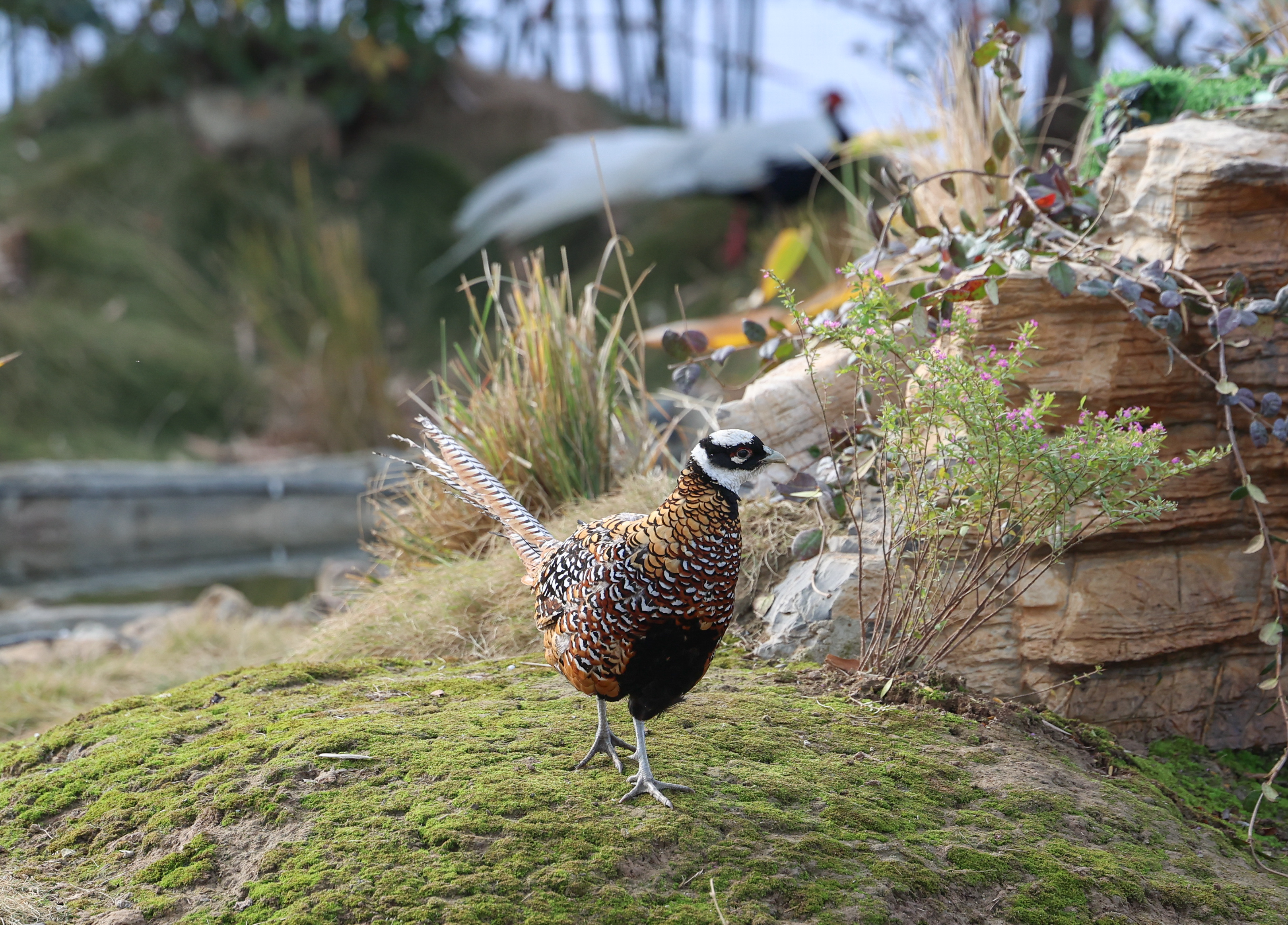 在鱼梁洲普罗旺斯庄园观鸟站拍摄的国家一级保护动物白冠长尾雉。