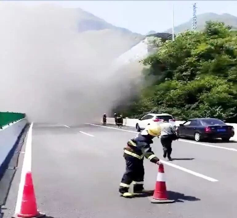 随后,消防救援人员进入隧道,搜寻到事故地点。经现场勘查,一辆越野车追尾一辆运输水果的大货车,致越野车起火燃烧。在扑灭明火后,经现场搜救,发现越野车司机已经死亡,未有其他受伤人员。