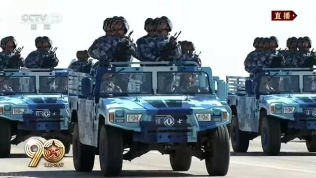 此次受阅的东风军车队伍中增添了新成员——40台东风“猛士”首次作为引导车出现在阅兵大典上,另外,43台东风EQ2102系列军车则装备于受阅的通信方队、无人机方队和后勤方队。