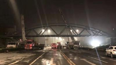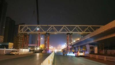 樊城区七里河路市二十中门前天桥主体成功吊装